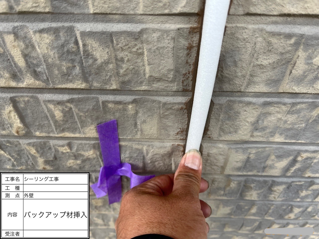 撤去できたら目地の深さを調整するバックアップ材を挿入し