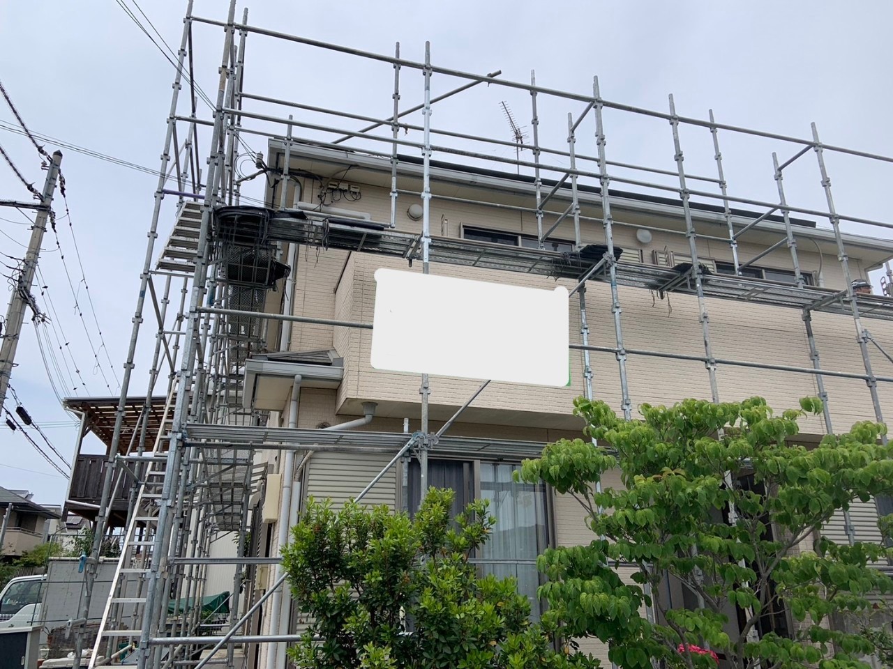 足場を組立てた後に、