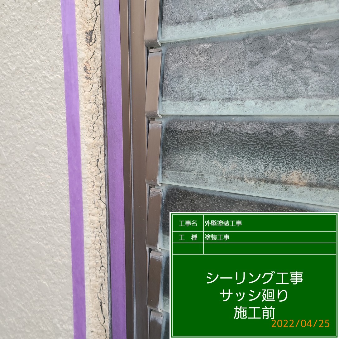 次は、外壁目地、サッシ廻りのシーリング補修です。
