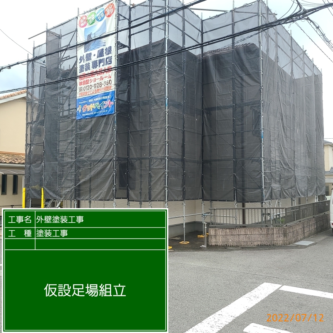 足場を組み立てた後に、