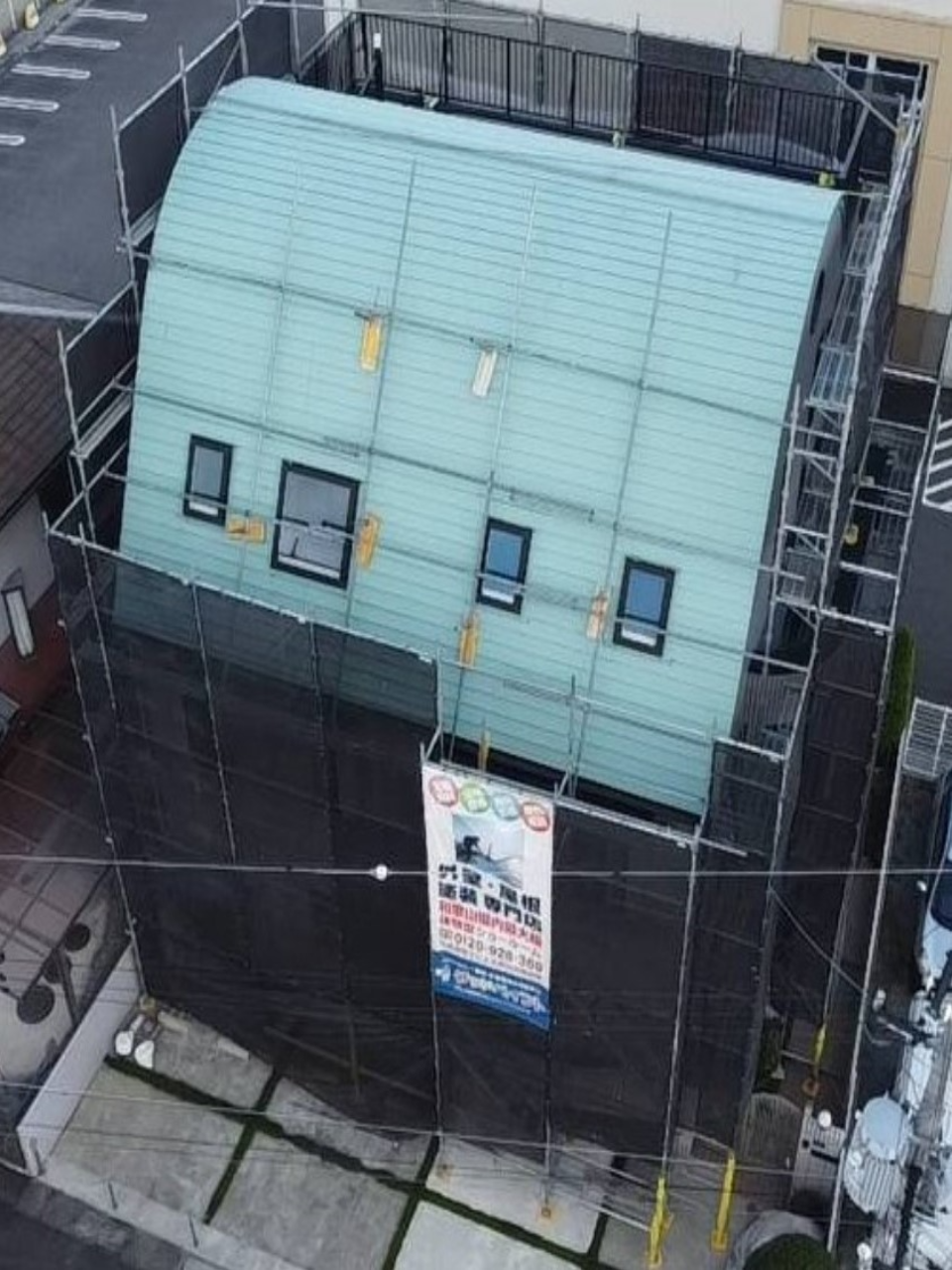 足場を組み立てた後に、