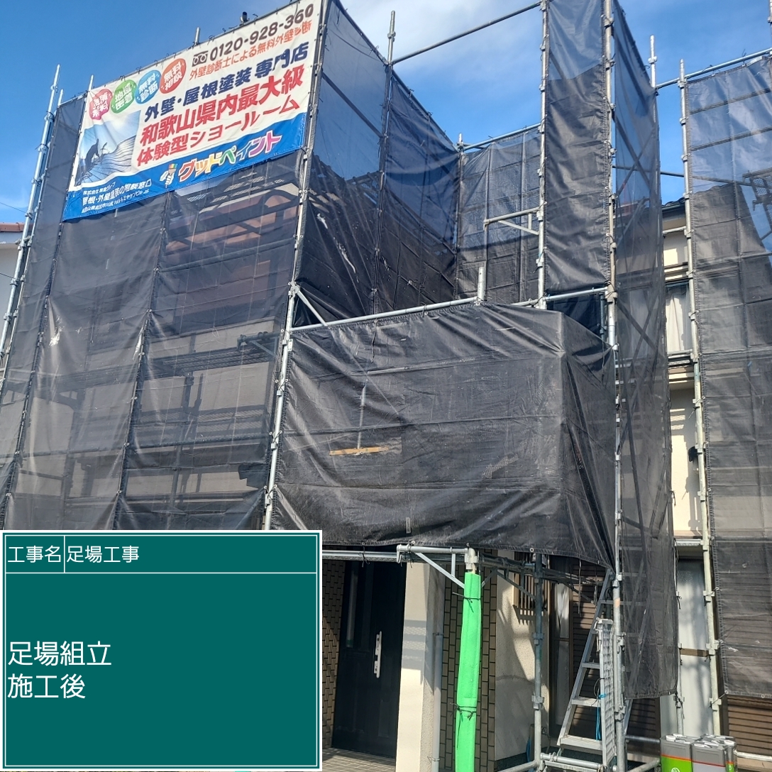 足場を組立てた後に、