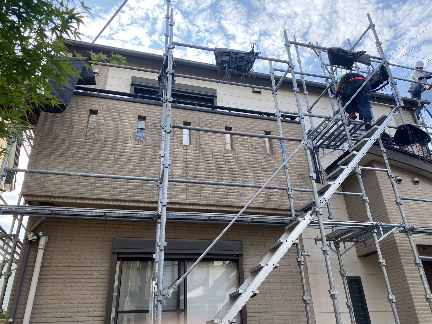 足場を組み立てた後に、