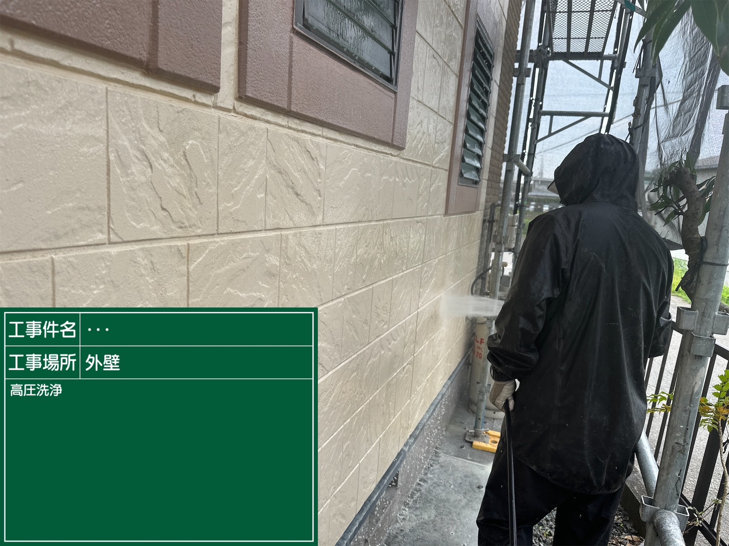 高圧洗浄時の水や塗料の飛散を防止するための