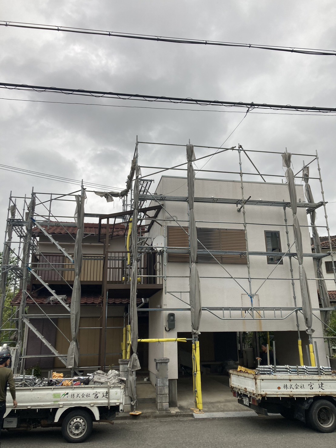 足場を組み立てた後に、