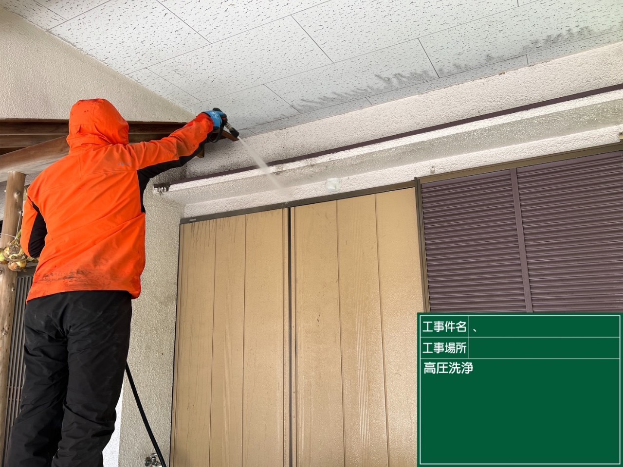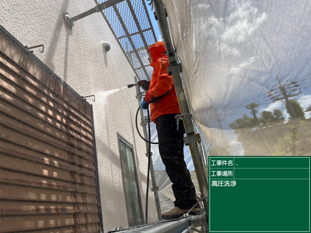 高圧洗浄時の水や塗料の飛散を防止するための
