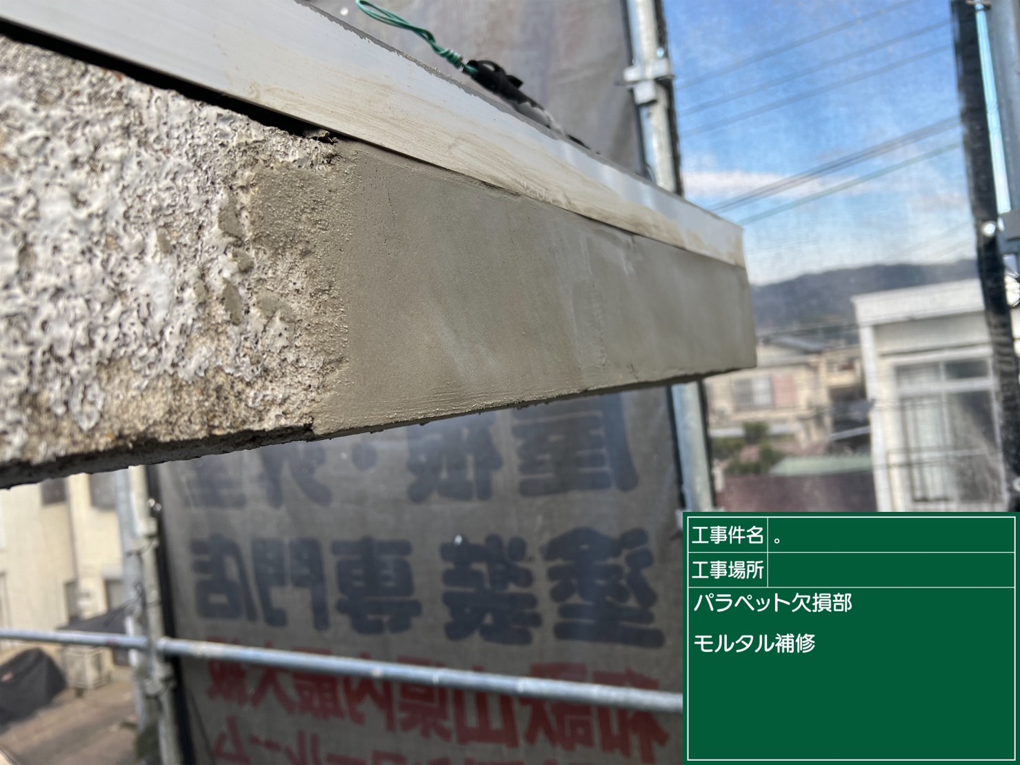 次は、パラペットの破損部分を補修しました!