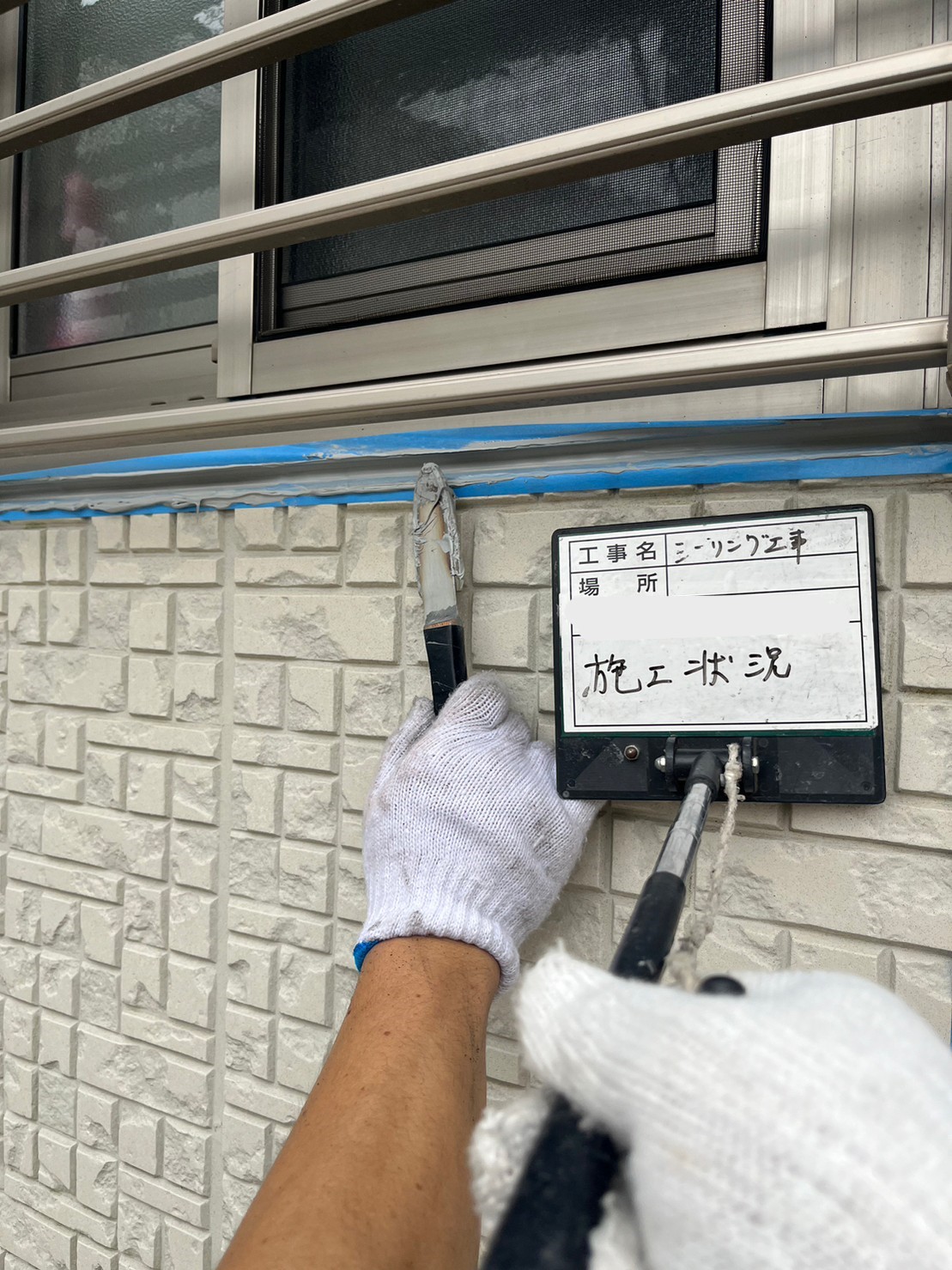 ①元シーリングの上にプライマー塗布