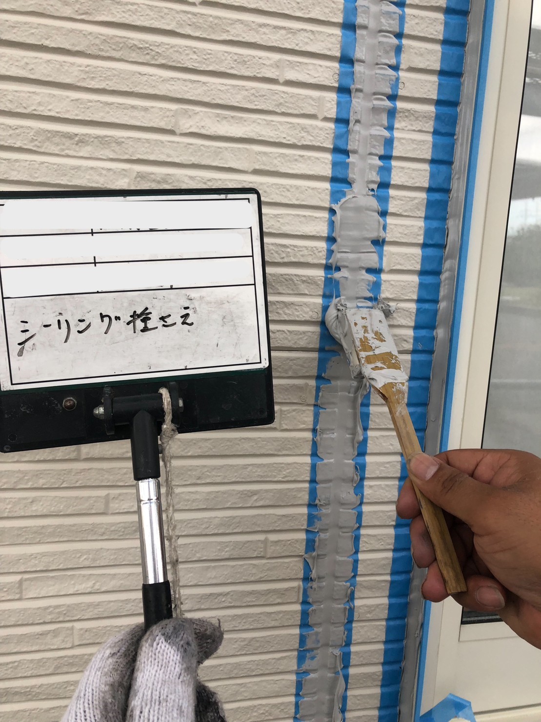 ①元シーリングの上にプライマー塗布