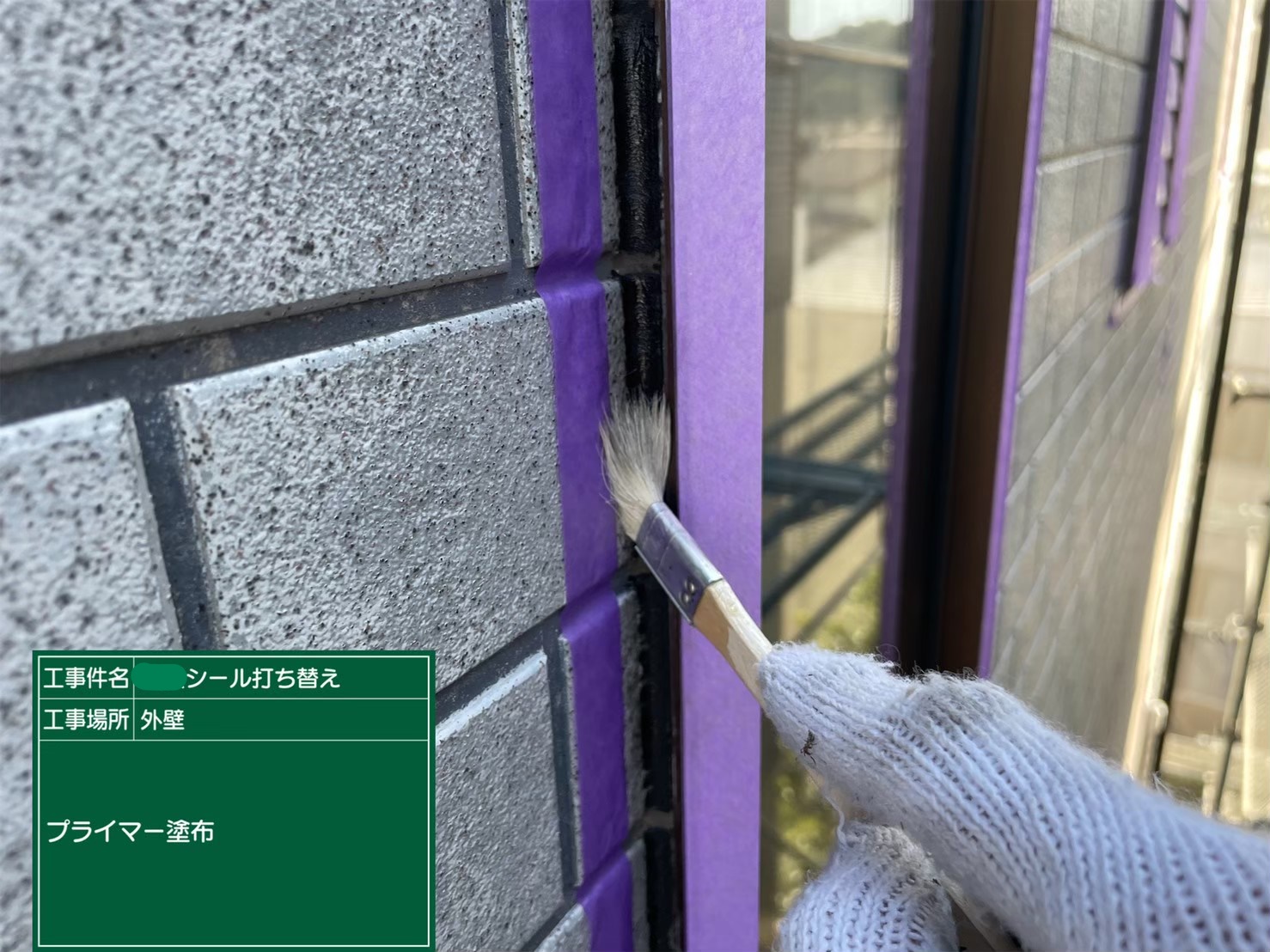 元のシーリングの上に密着性を高めるプライマー➡