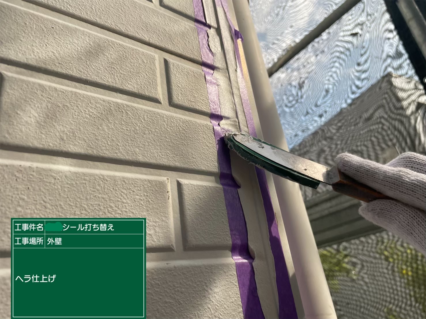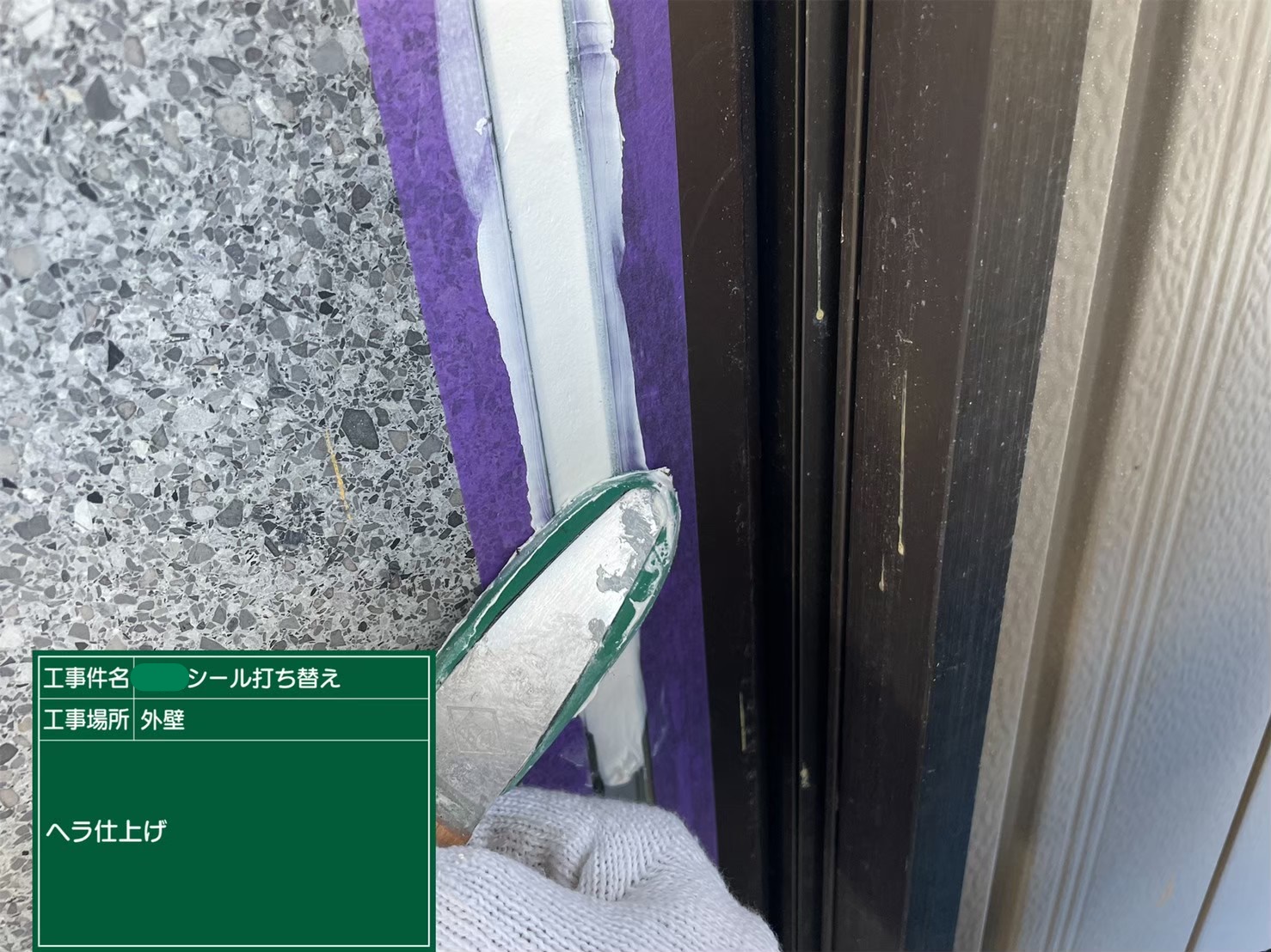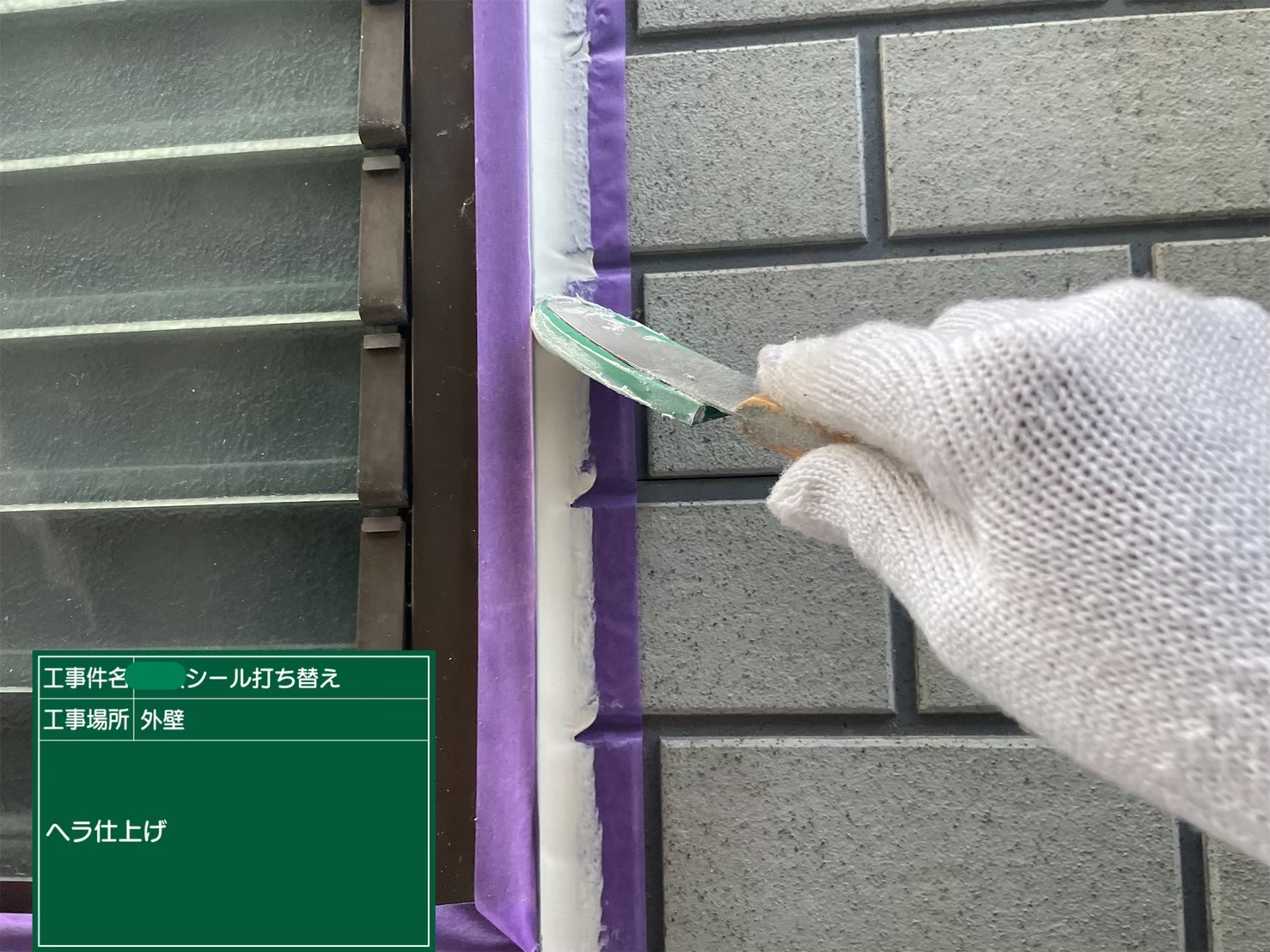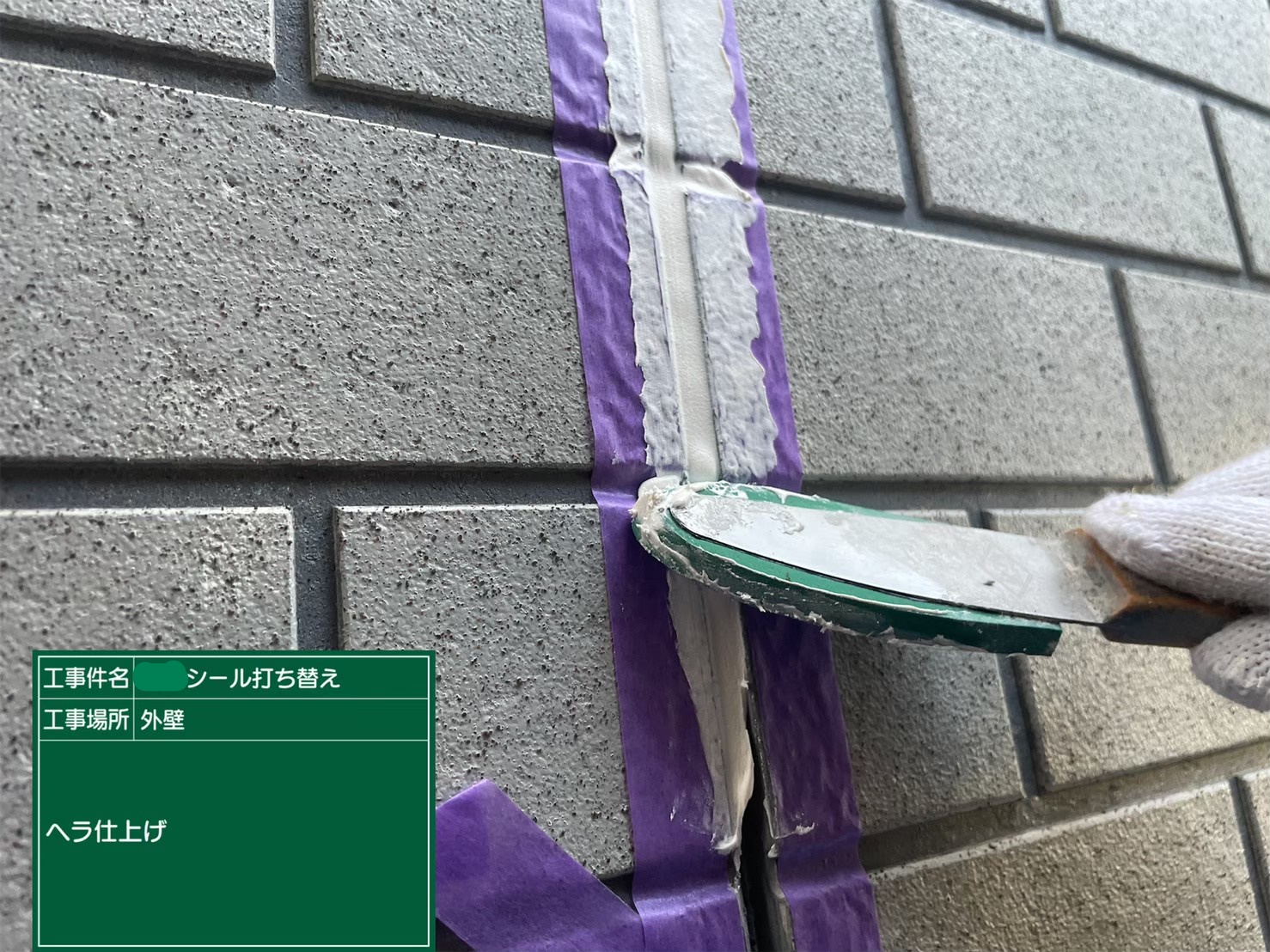 新しいシーリングの充填➡ヘラ仕上げの工程で