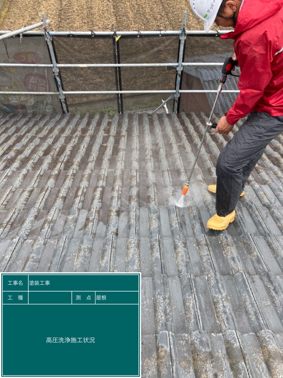 - 屋根高圧洗浄中
