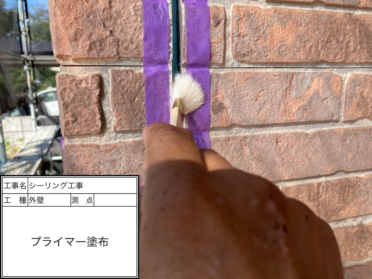 プライマー塗布後、コーキングガンという専用の機械で