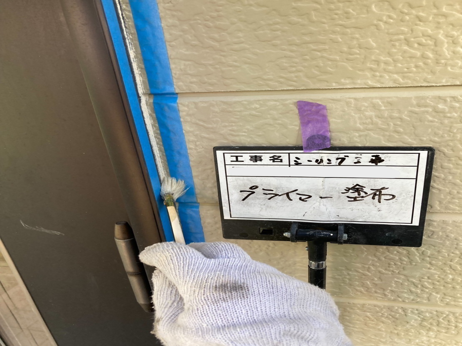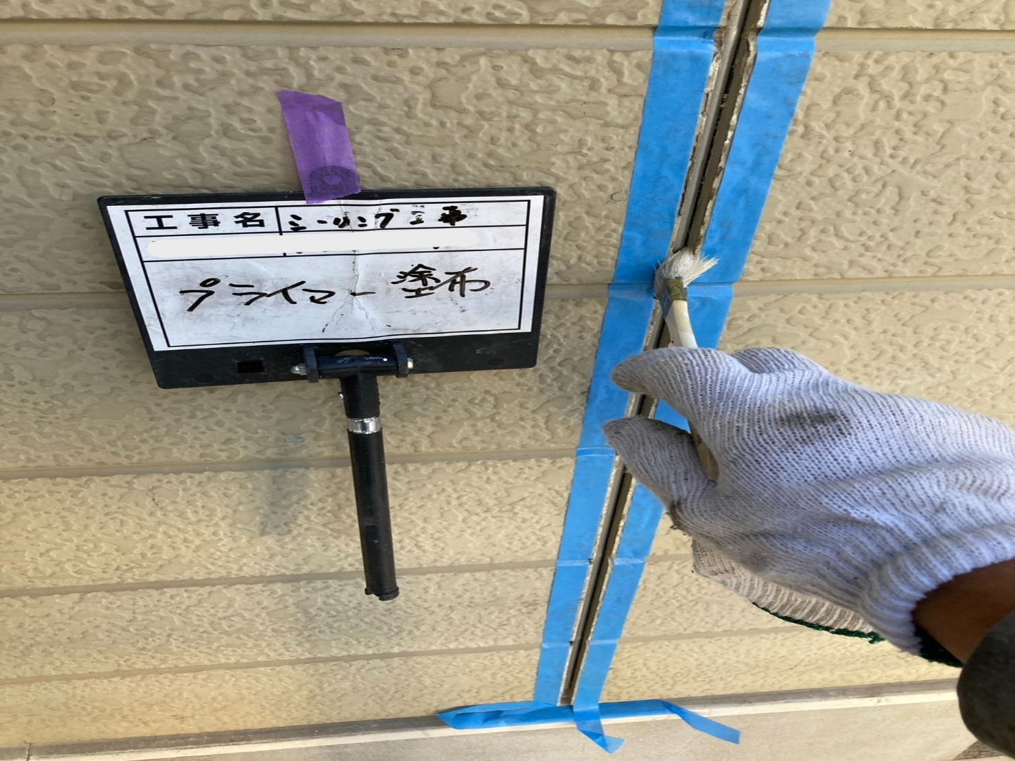 プライマー塗布後、コーキングガンという専用の機械で