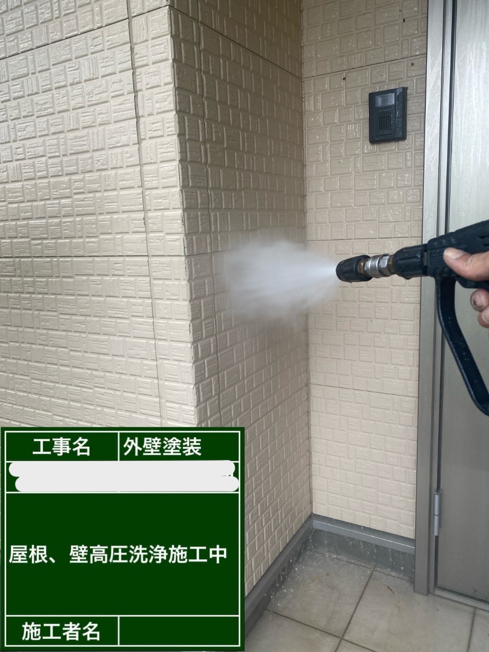 高圧洗浄時の水や塗料の飛散を防止するための