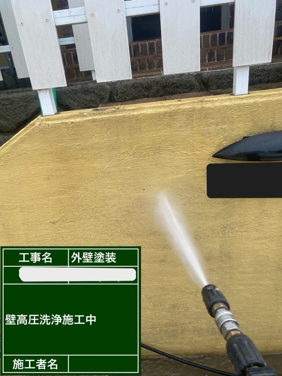 高圧洗浄時の水や塗料の飛散を防止するための