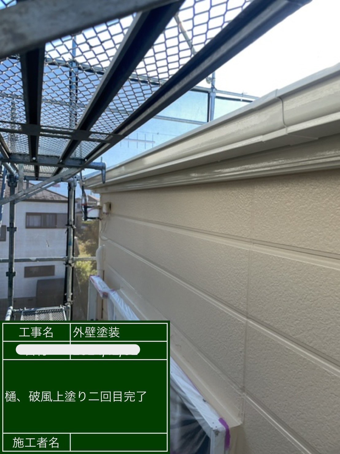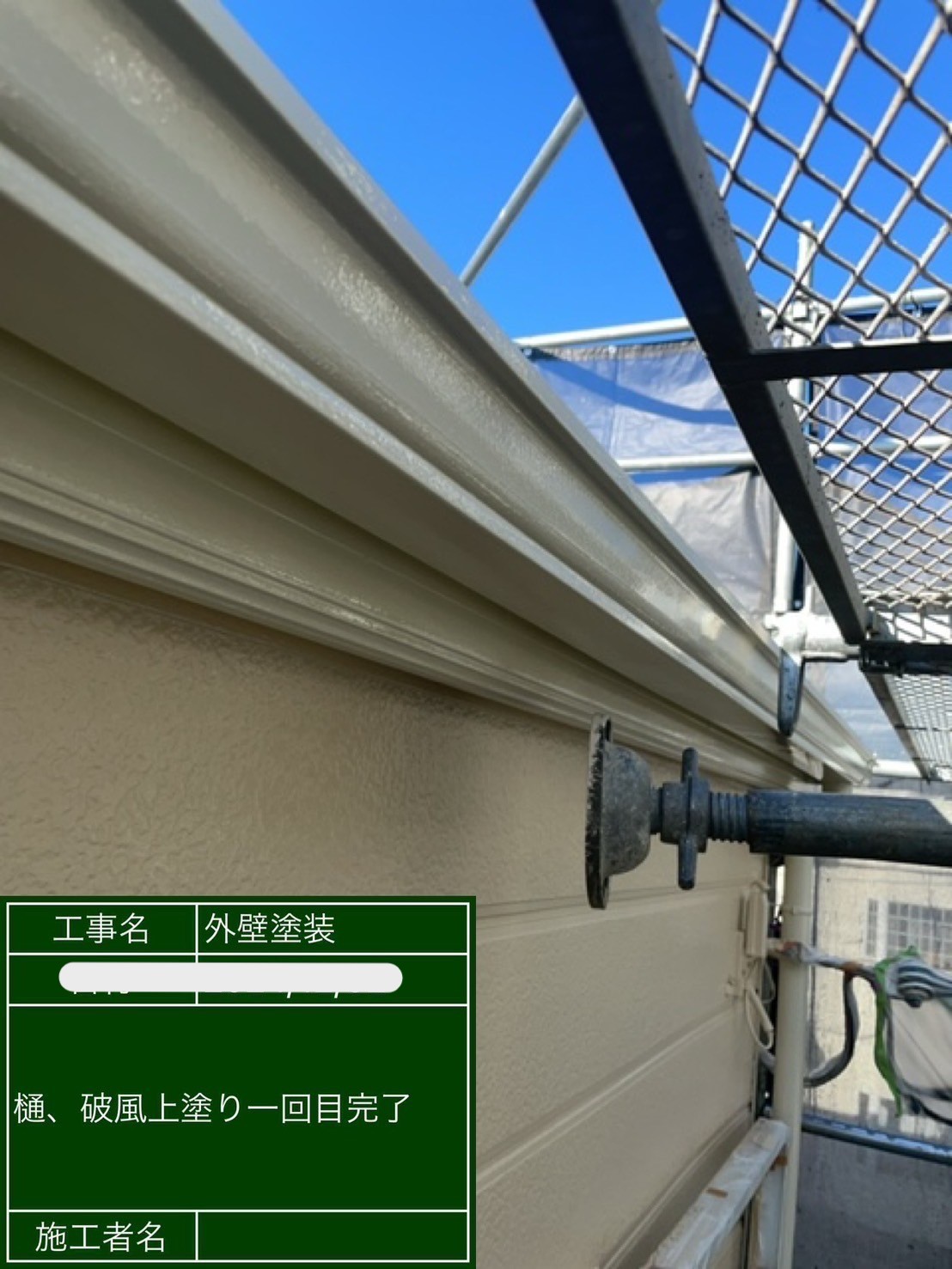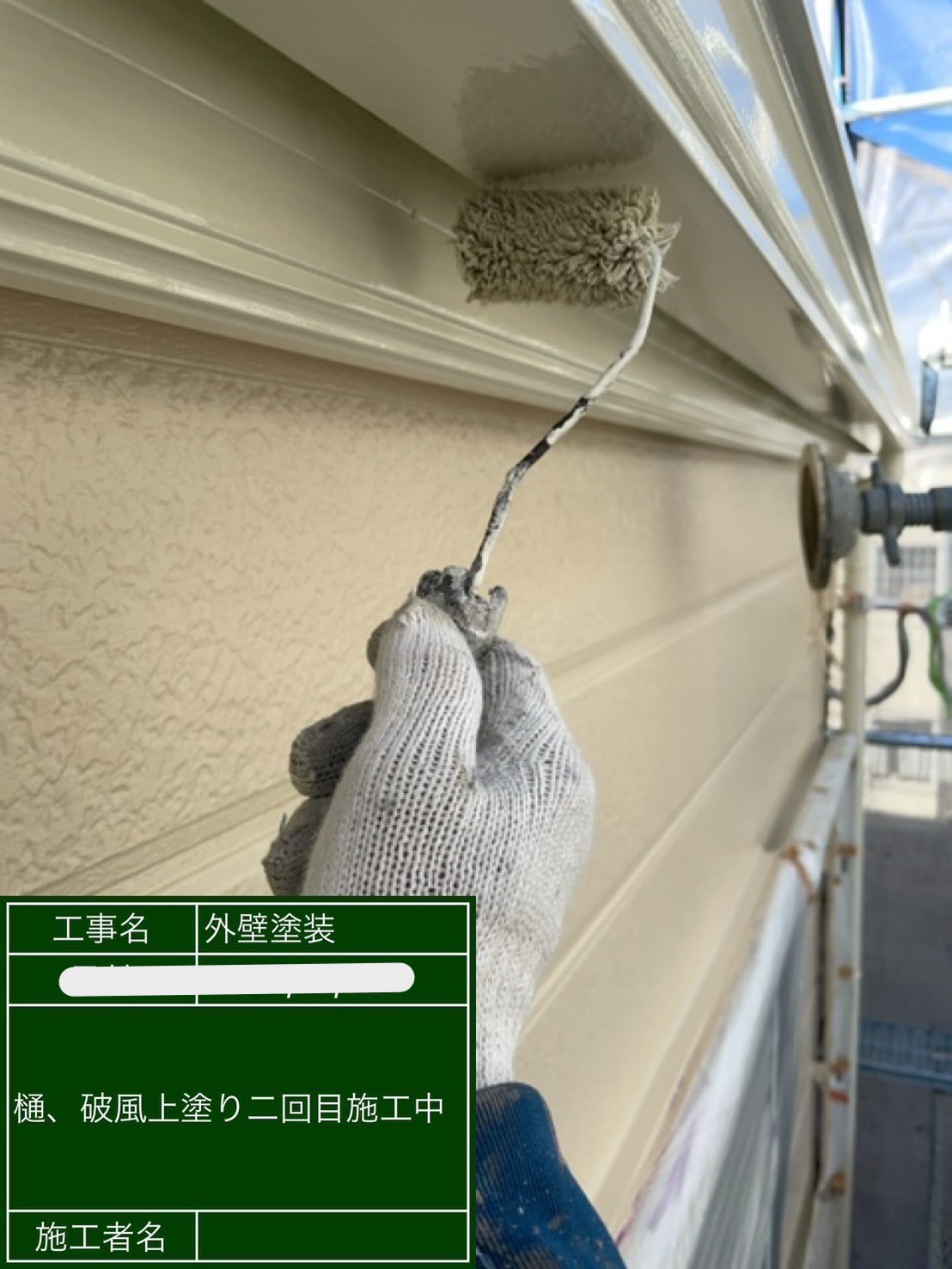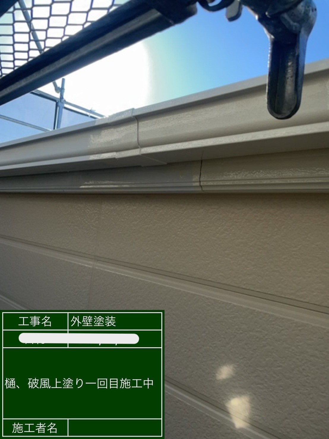 鼻隠しと雨樋塗装の様子です!
