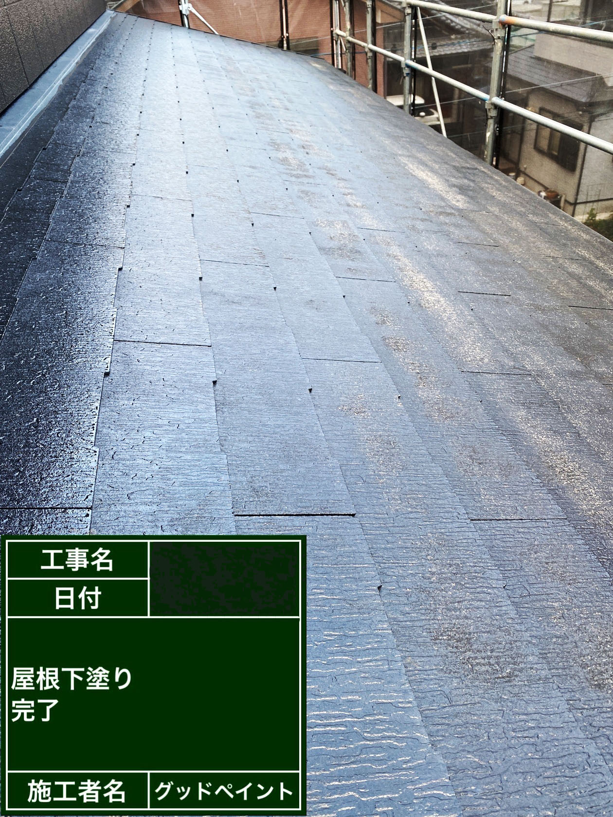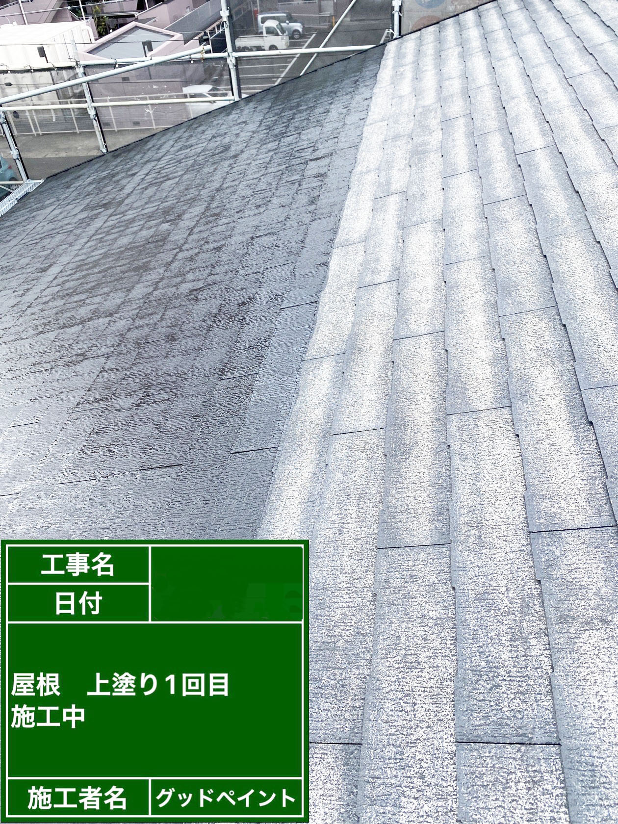 K様邸進捗状況 2022/03/07 K様邸の進捗状況です。 屋根下塗り、中塗り、上塗り、完了致しました。 屋根下塗り完了 屋根中塗り施行中 屋根中塗り完了 屋根上塗り施行中 和歌山県での外壁塗装、屋根塗装はグッドペイントにお任せ下さい! 外壁診断士による外壁診断、ドローンでの屋根診断、お見積り、全て無料でやらせていただきます。