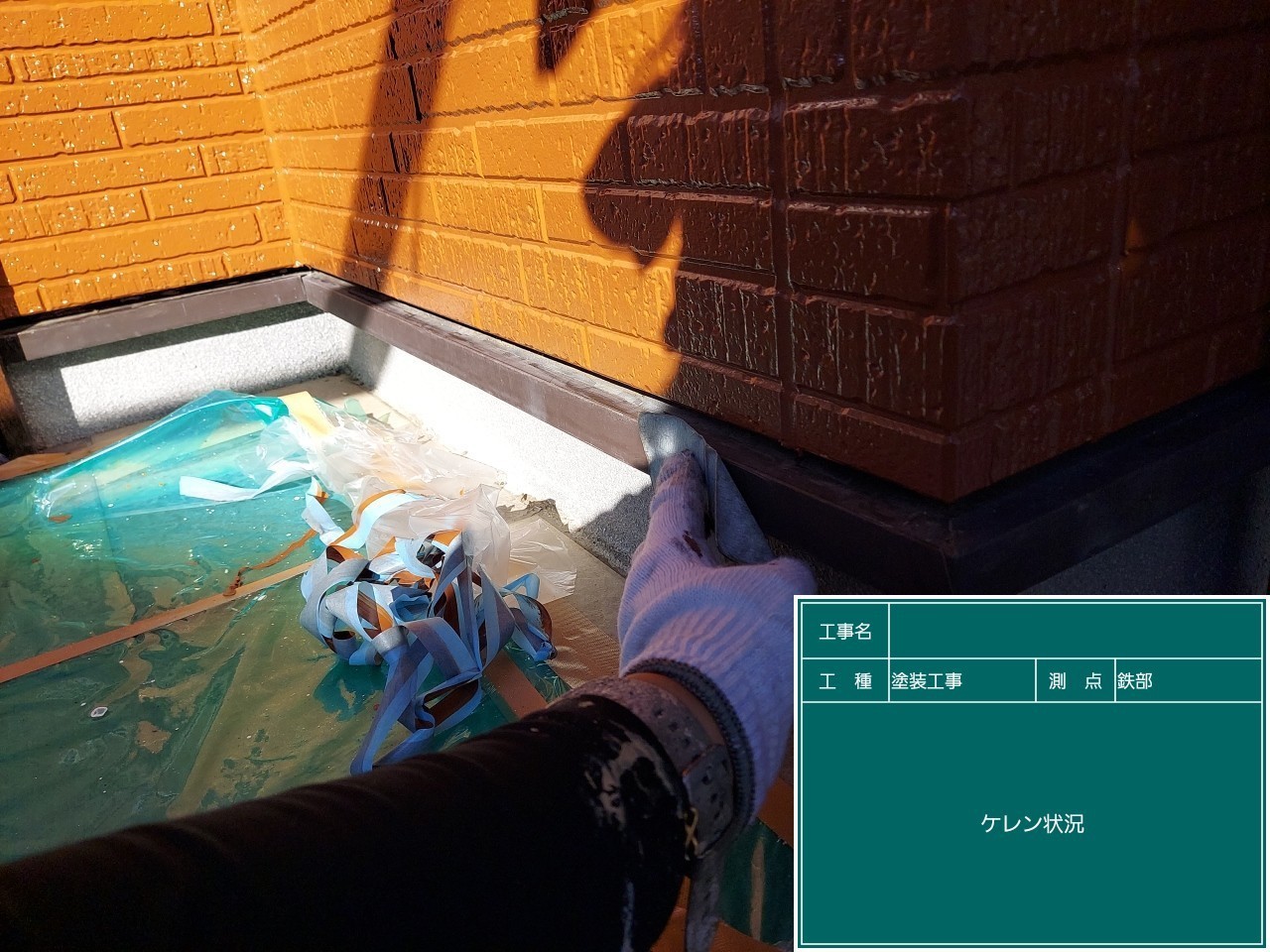 ケレン作業で古い塗膜や汚れを処理した後、