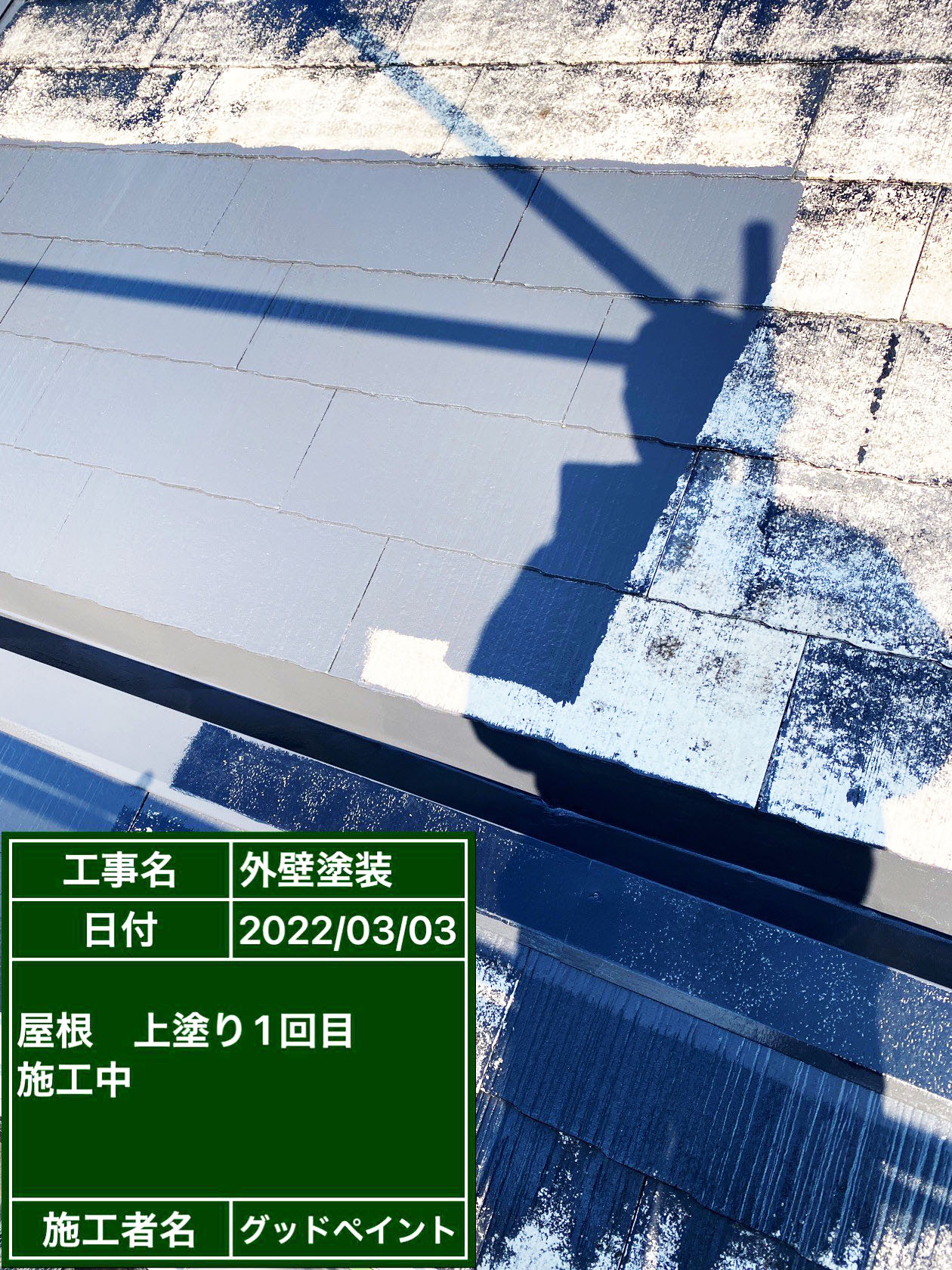 - 屋根上塗り1回目完了