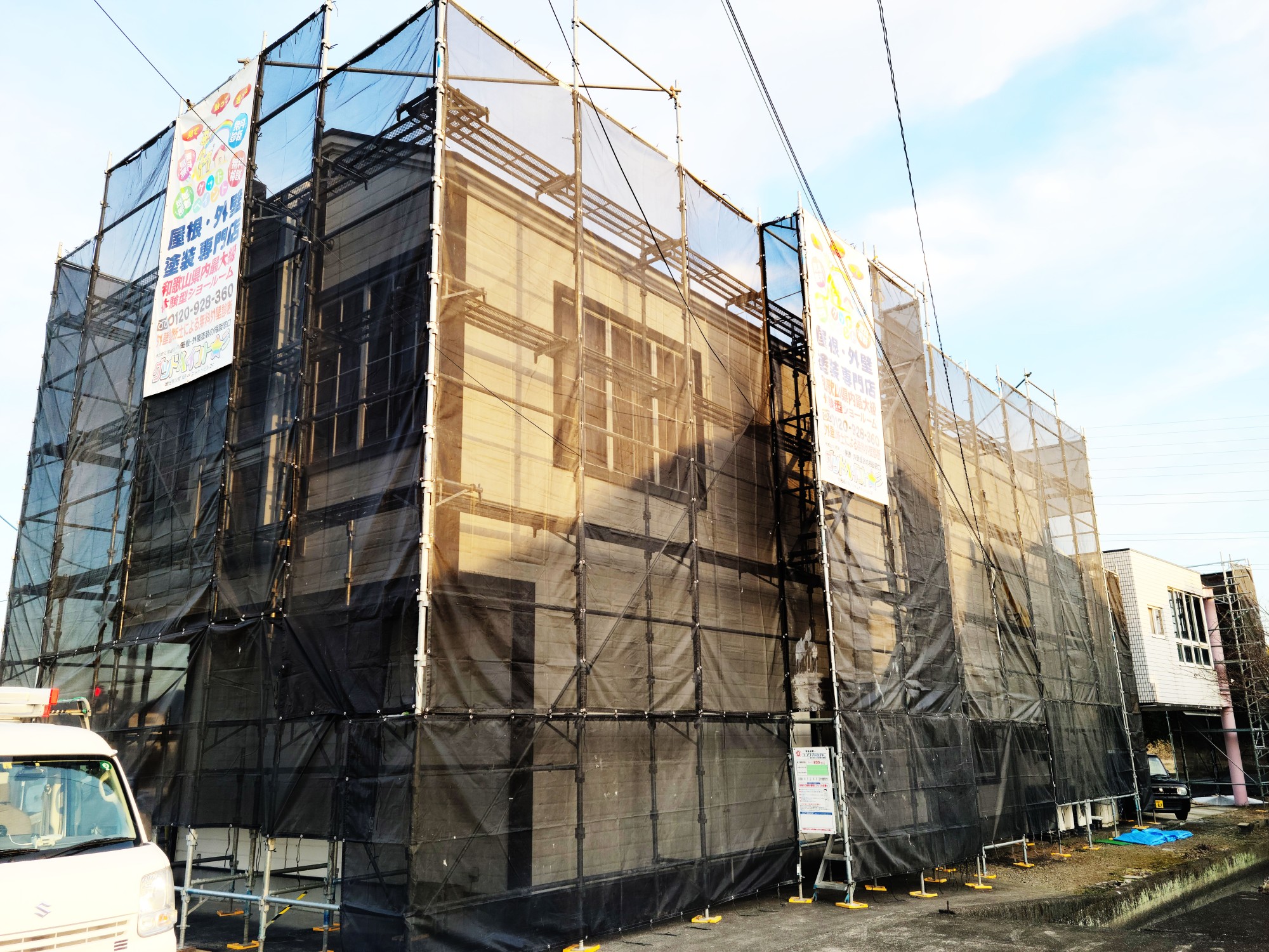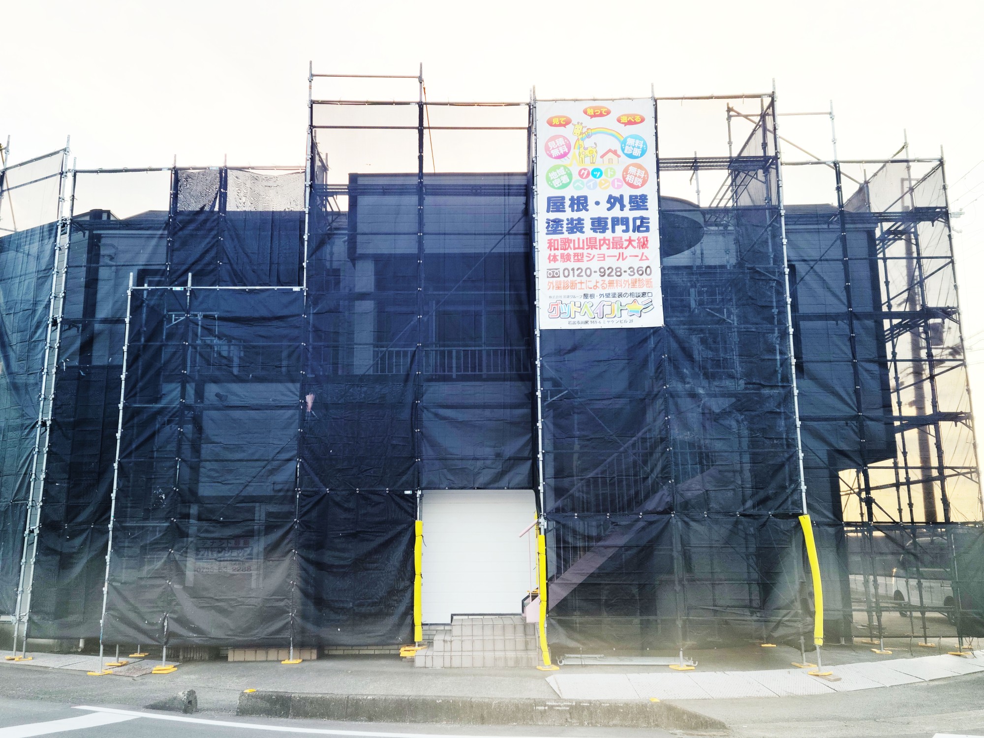 W様邸着工しました! 2022/03/11 和田様邸の工事が始まりました。 足場組立完了です。 施工前 足場組立 足場組立 足場組立 和歌山県での外壁塗装、屋根塗装はグッドペイントにお任せ下さい! 外壁診断士による外壁診断、ドローンでの屋根診断、お見積り、全て無料でやらせていただきます。